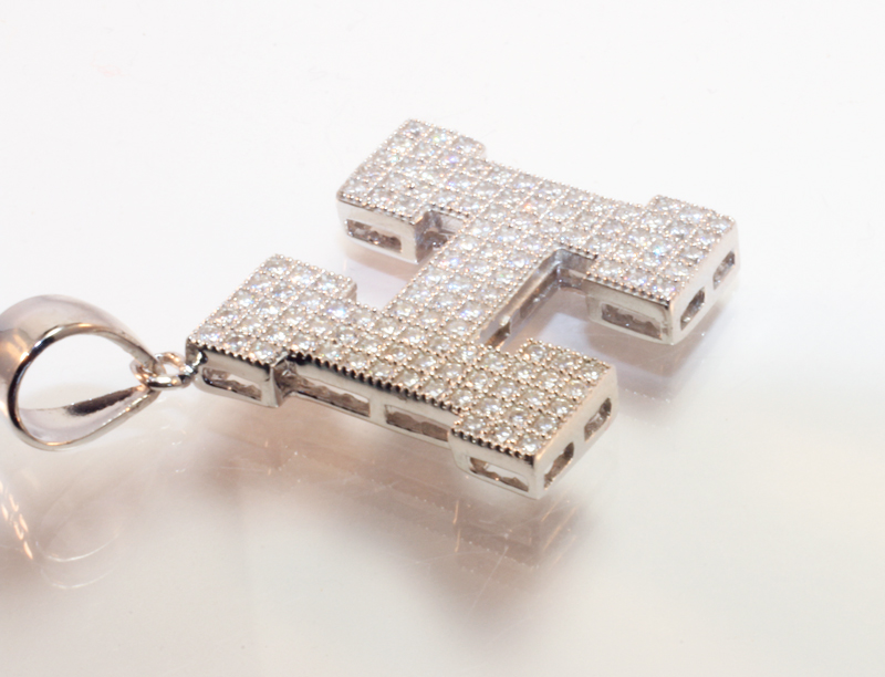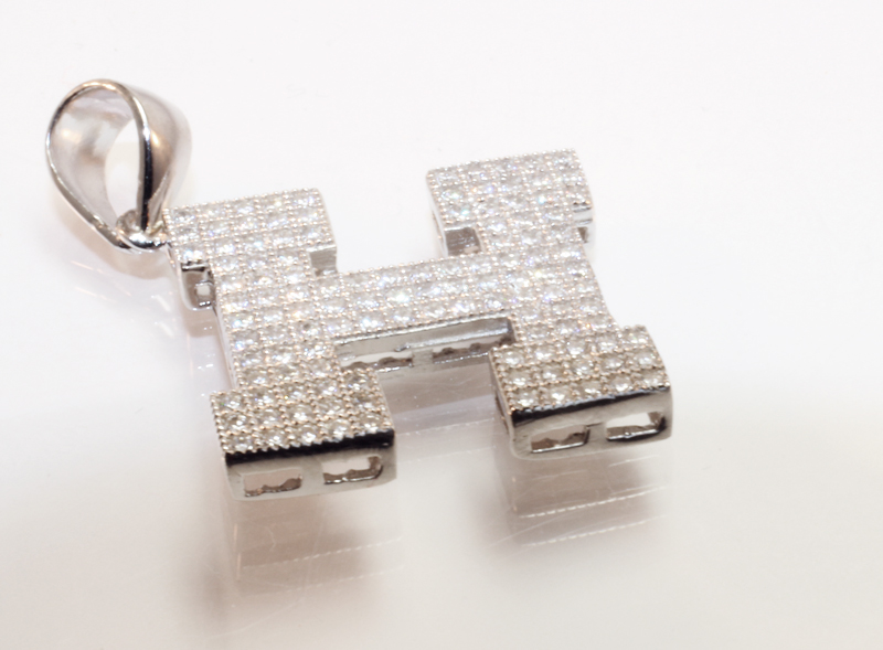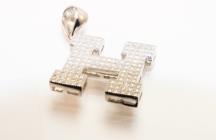 Mit unendlich vielen Steinen verzierter Anhänger "H" in echt Silber