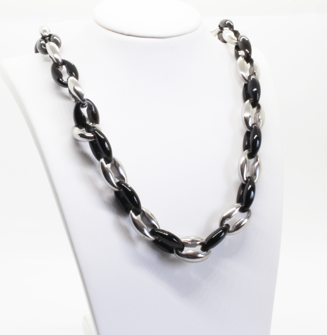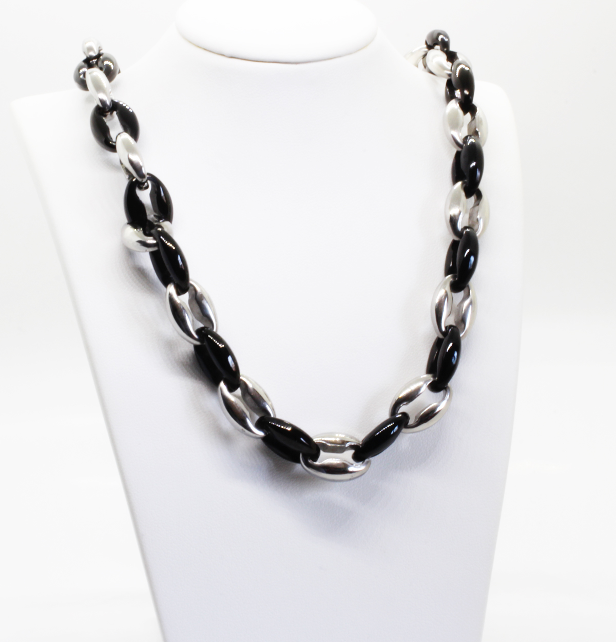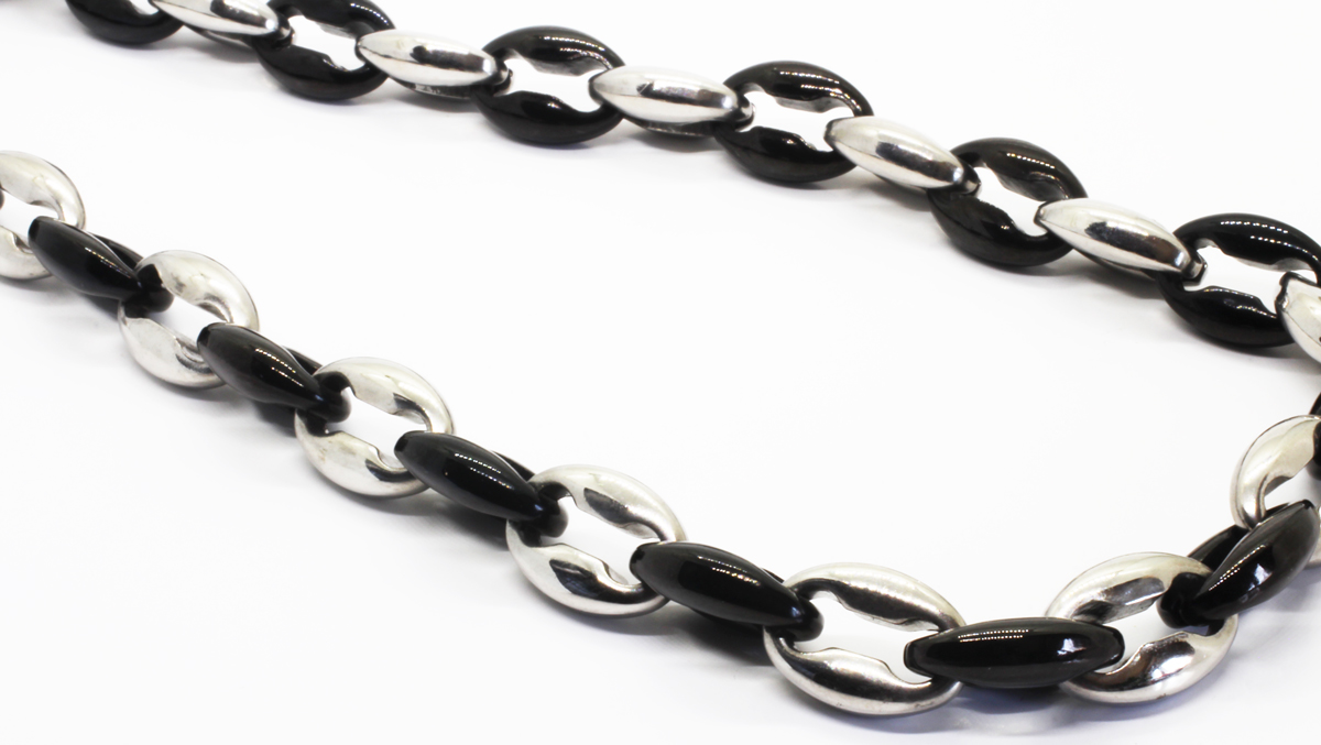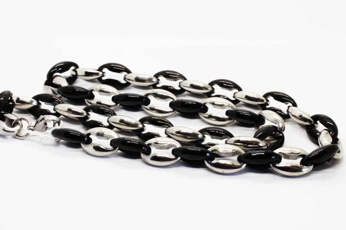 "FETTE BOHNE" Massive Edelstahlkette, Glieder in Bohnenoptik