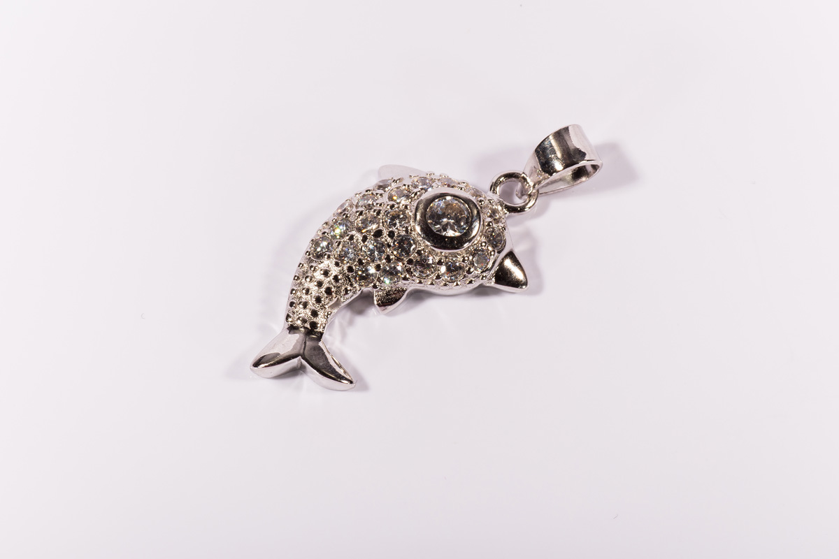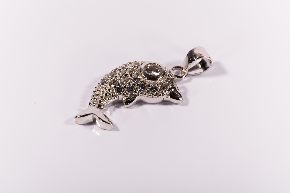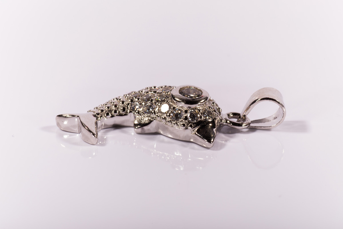 wunderschöner Anhänger "Fisch" in echt Silber 925´er, vielen kleinen gefassten Steinen, und als Auge einen großen Stein