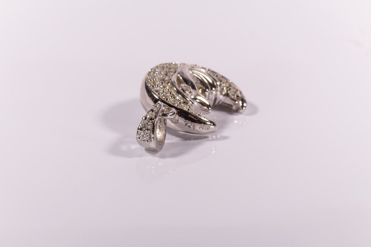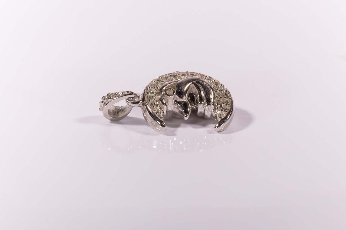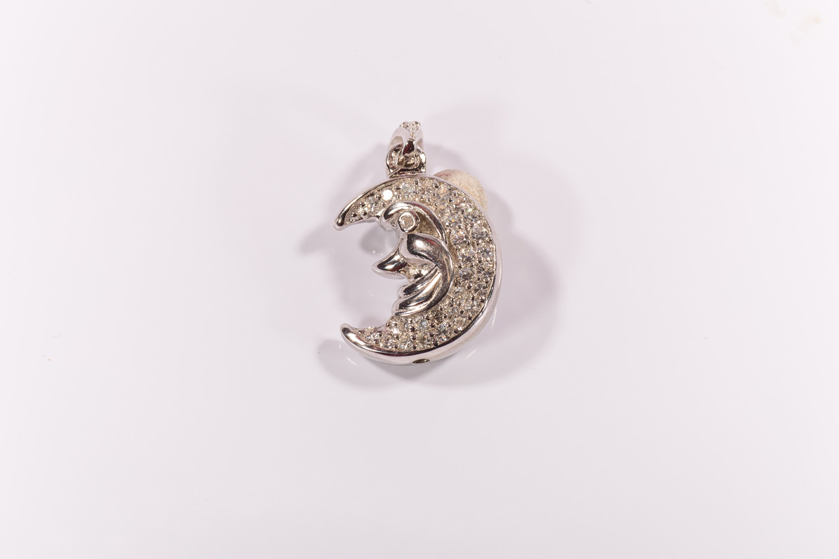 Die wunderschöne Anhänger in echt Silber "Mann im Mond" mit vielen gefassten Steinen.