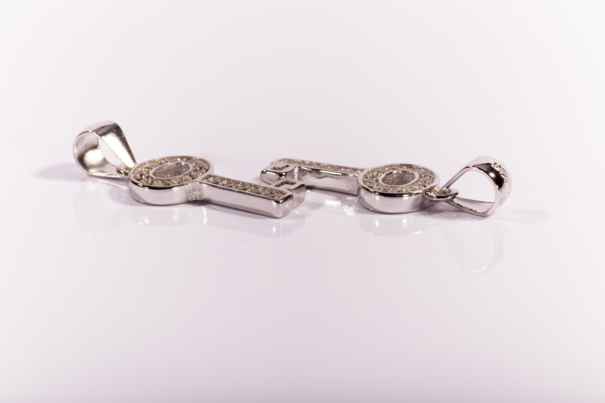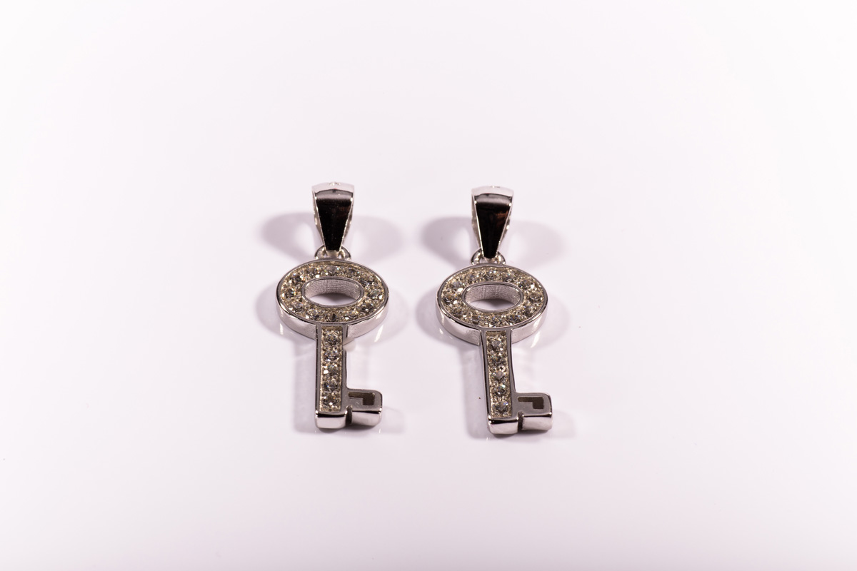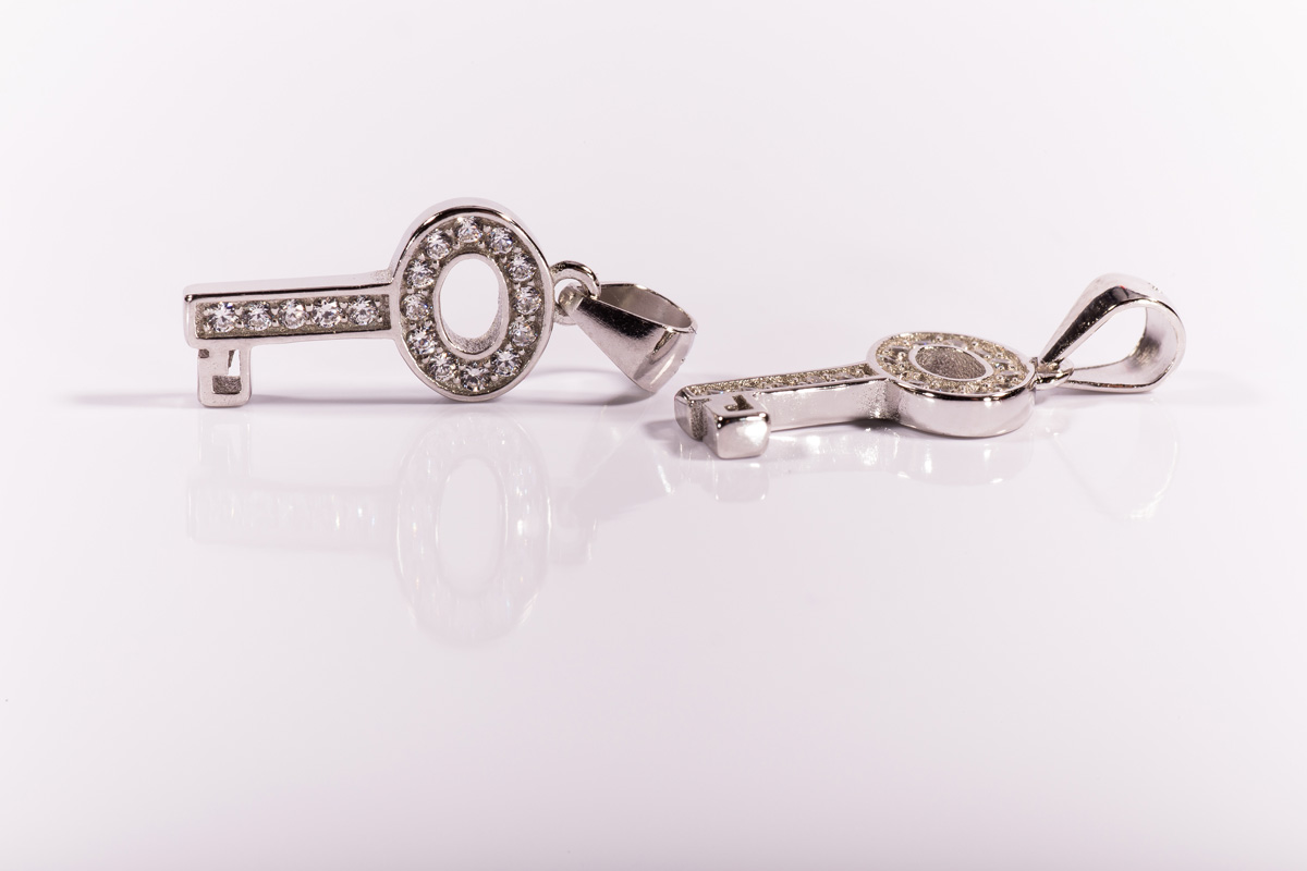Der Schlüssel zum Glück. Schmuck - Anhänger "Schlüssel" in echt Silber mit gefassten Steinen.