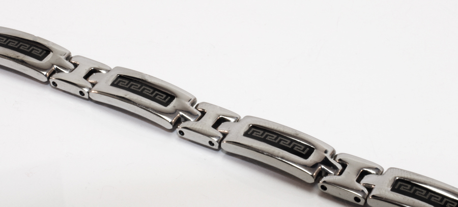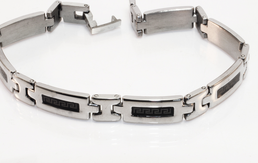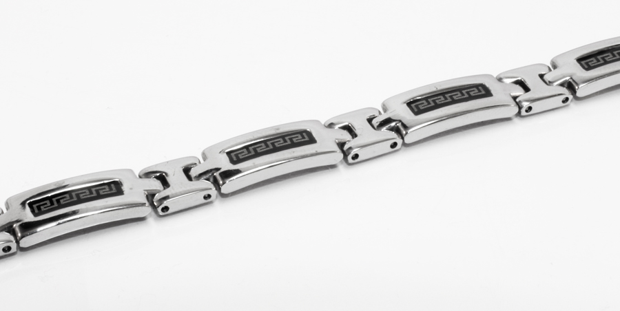Armband in massivem Edelstahl und schwarz Anteil in den Elementen