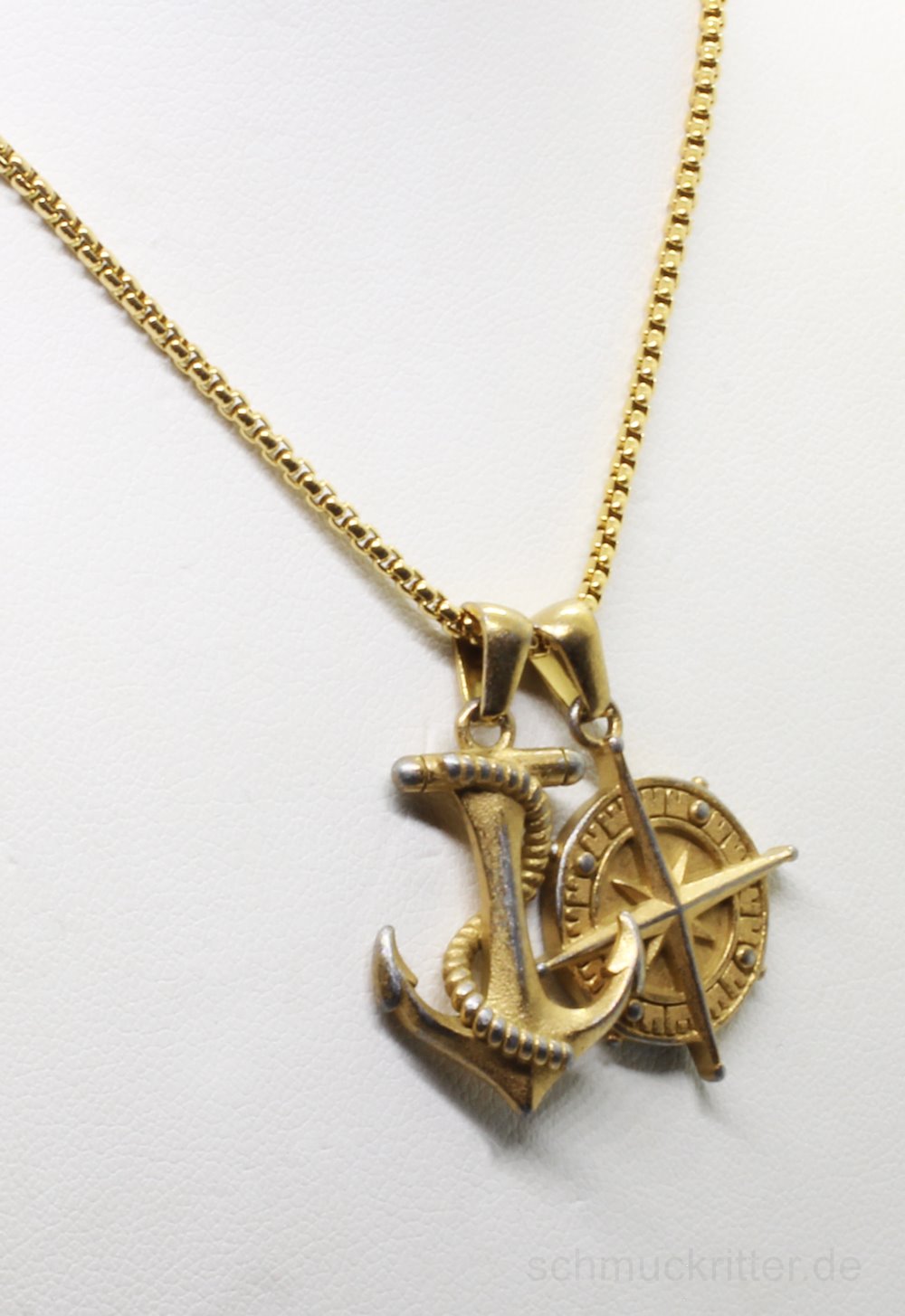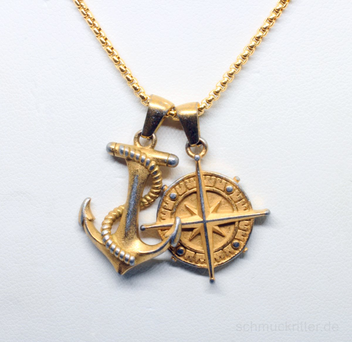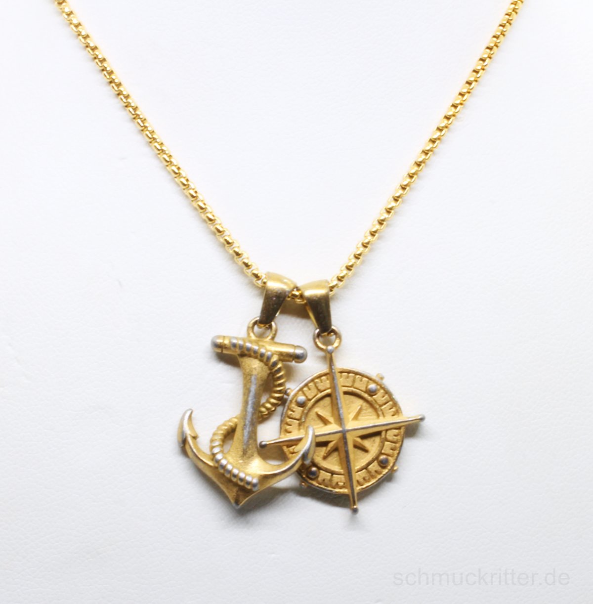 Edelstahl Halskette mit Anker & Kompass Anhänger