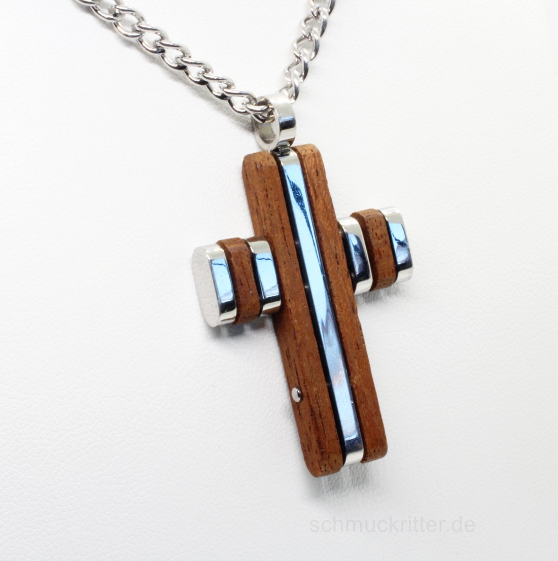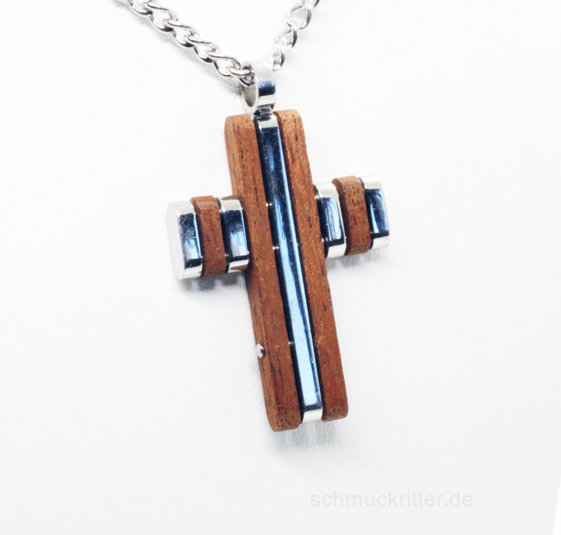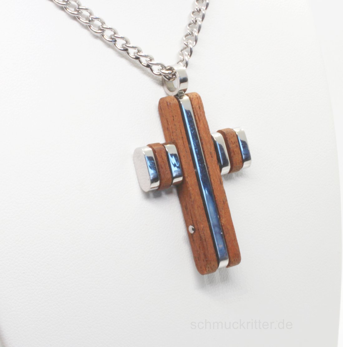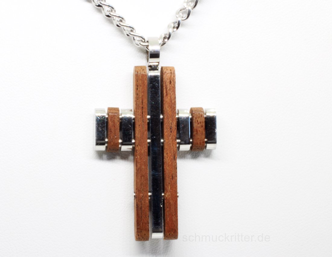 Edelstahlkette mit Anhänger "Holz-Kreuz"