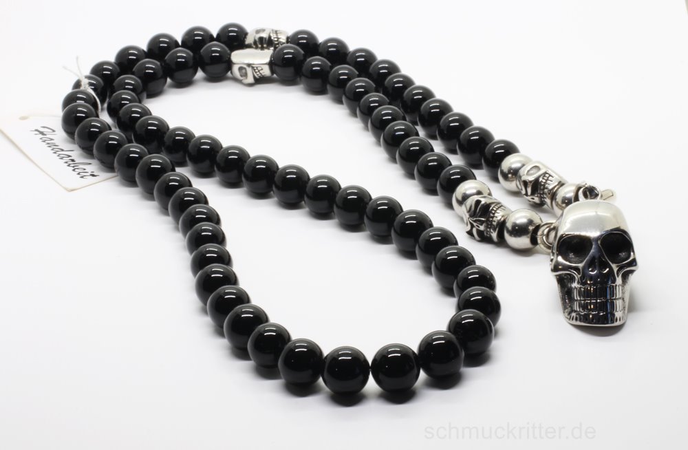 , mit Edelstahl-Elementen und einem Edelstahl - Anhänger "Totenkopf"