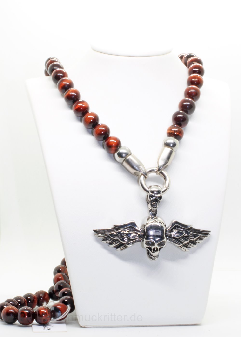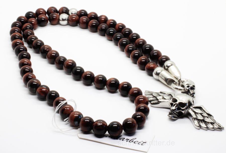 , mit Edelstahl-Elementen und einem Edelstahl - Anhänger "Totenkopf"