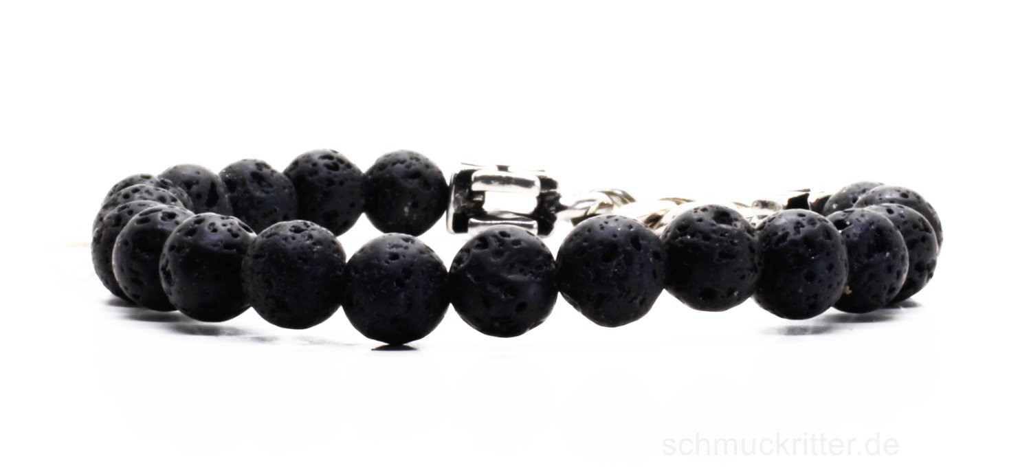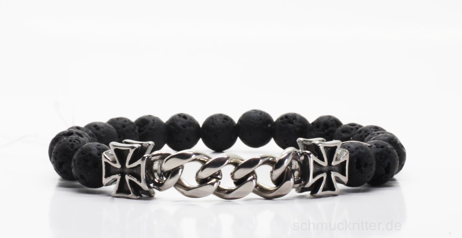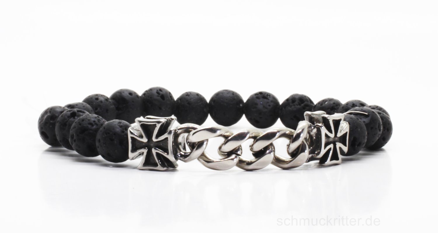 Lavastein Armband mit eisernem Kreuz und Panzerketten Mittelelement