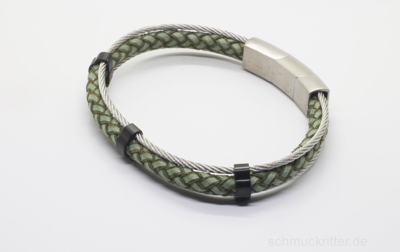 Lederarmband / flecht / hellgrün mit Edelstahl