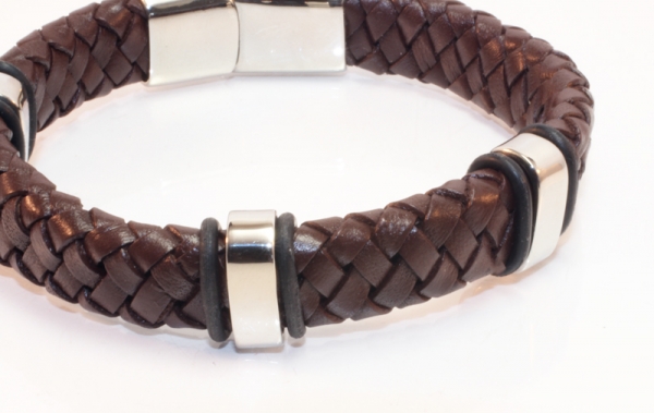 Das Lederarmband hat eine Länge von 21 cm. Der Ø des Armband sind 1,2 cm, an den Elementen 1,6 cm.