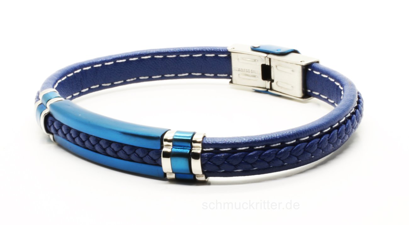 elegantes und stylisches Lederarmband in blau. Ein edles Mittelelement gibt dem Armband den WOW Effekt obendrauf.