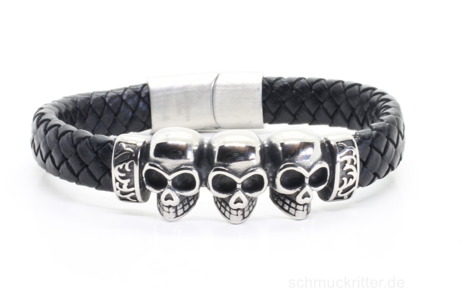kraftvolles ausgefallenes echt Lederarmband mit Totenköpfen