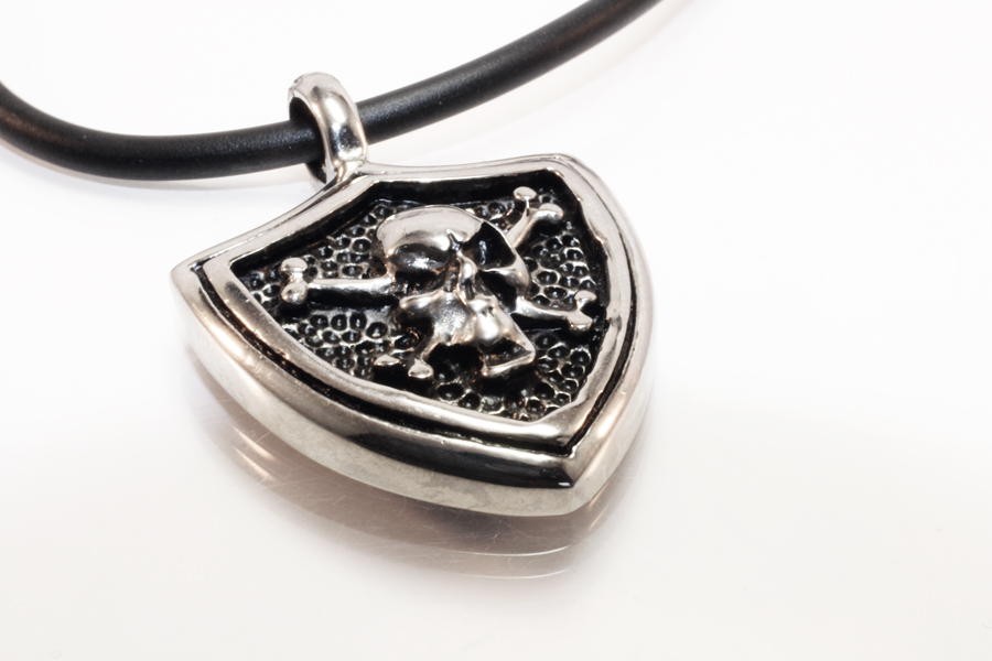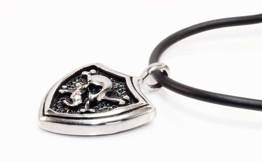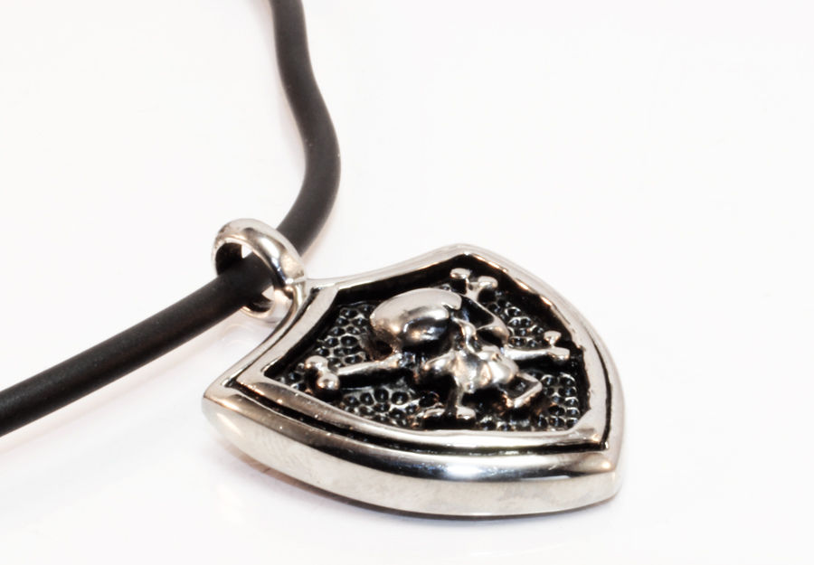 Skull / Totenkopf Platte an Kautschukkette. Kautschukkette mittel, mit Steckverschluss in Edelstahl